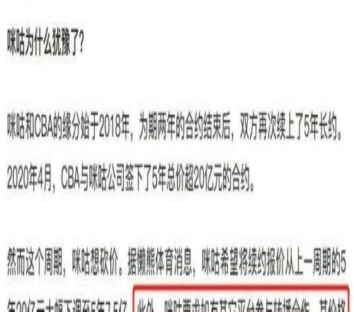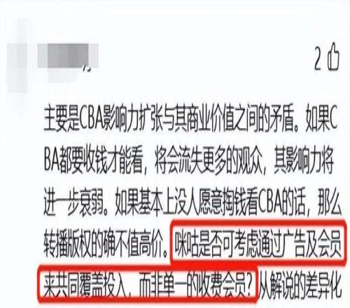 有网友分析,咪咕与CBA合作多年,大概率不会彻底退出。