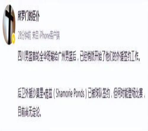 就在比赛结束后,有传闻四川男篮开始引进外援,但还是有很多问题需要节。随后媒体跟进,之前在墨西哥打球的庞兹已经确定会加盟四川男篮。